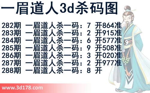 该一眉道人3d杀码图由3D之家3D图库频道原创,仅供彩民参考,温馨提供。