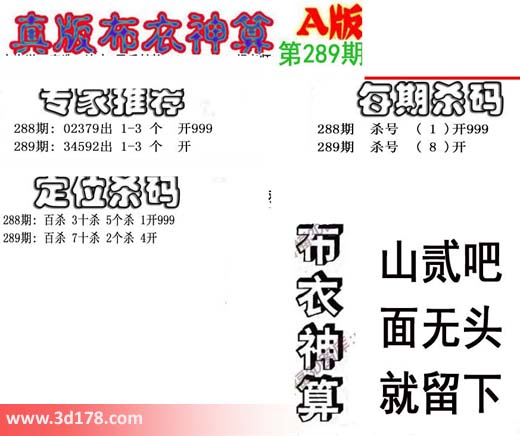 3d之家布衣图库之布衣神算图第2015289期详解: