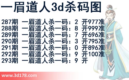 该一眉道人3d杀码图由3D之家3D图库频道原创,仅供彩民参考,温馨提供。