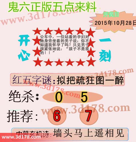 福彩3d鬼六图库第15294期鬼六正版五点来料图: