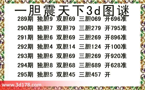一胆震天下三胆图库由3D之家3D图库频道原创,仅供彩民参考,温馨提供。