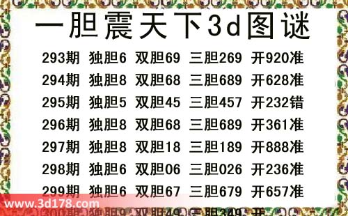 一胆震天下三胆图库由3D之家3D图库频道原创,仅供彩民参考,温馨提供。