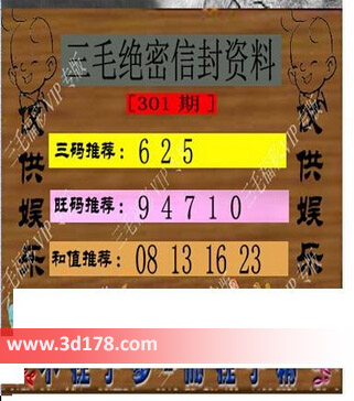 3d之家第2015301期三毛绝密信封资料图:福彩3d第301期三毛绝密信封资料图详解: