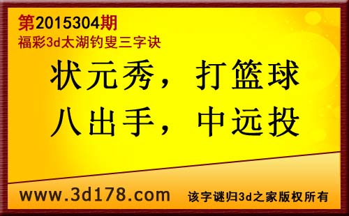 福彩3d第2015304太湖图库解析: