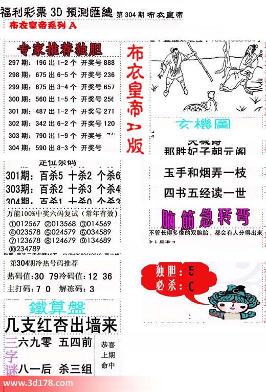 福彩3d第2015304期布衣天皇帝A版布衣专家独家推荐: