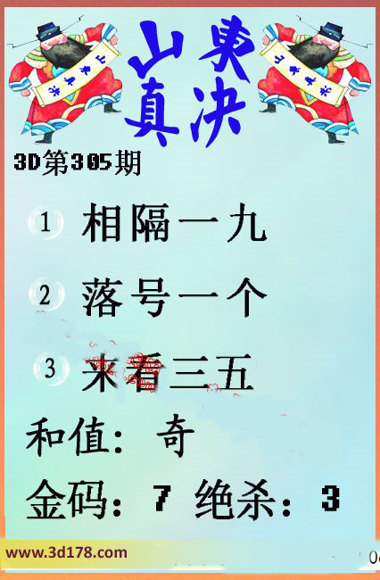 福彩3d第305期山东真诀图如下所示:第2015305期山东真诀图金码推荐: