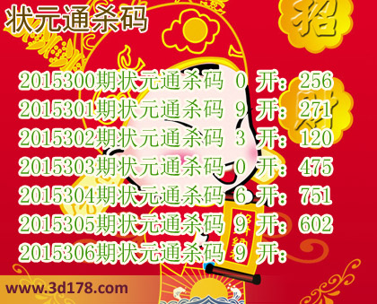 2015300期状元通杀码 0 开:256