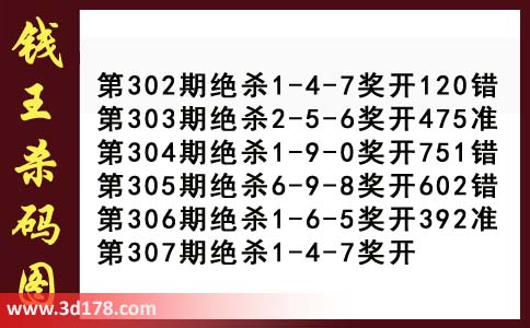 近期3d钱王杀码具体详情: