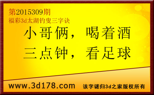 福彩3d第2015309太湖图库解析: