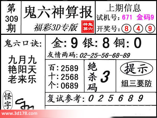 3d鬼六神算报第15309期为您推荐鬼六口诀: