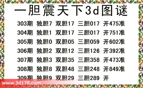 一胆震天下三胆图库由3D之家3D图库频道原创,仅供彩民参考,温馨提供。