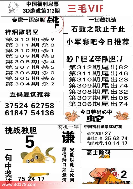 第2015312期3d三毛图库为您解读本期专家一语定胆: