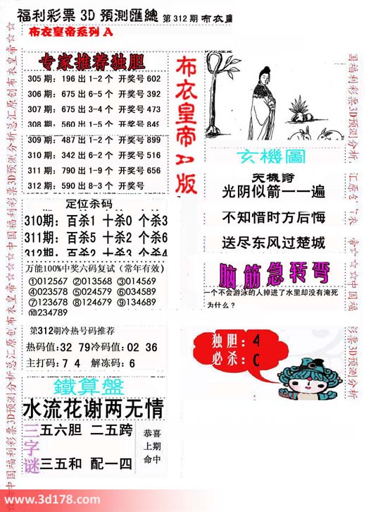 福彩3d第2015312期布衣天皇帝A版布衣专家独家推荐:
