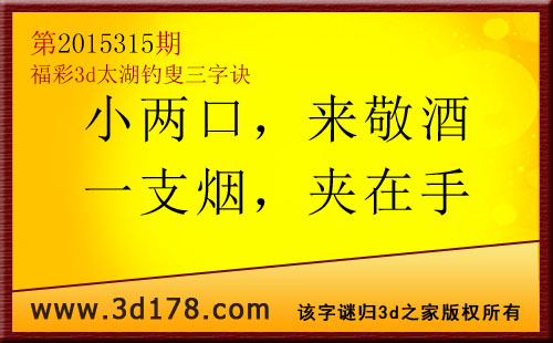 福彩3d第2015315太湖图库解析:小两口:一对新婚的小夫妻;明码解7,解7有2;来敬酒: 在婚礼上给宾客敬酒;解9有8;一支烟:一支香烟,解1有4;夹在手:把香烟夹在手里,解1有5;