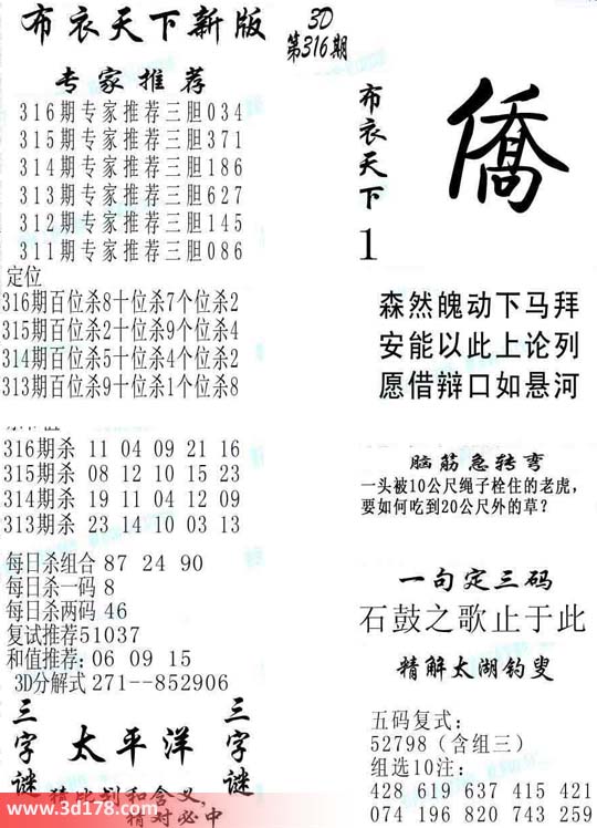 2015316期福彩3d布衣天下新版: