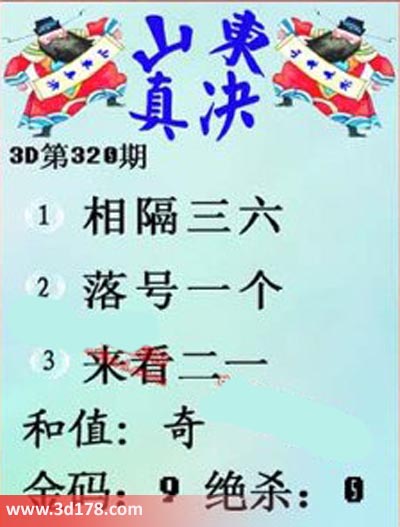 福彩3d第320期山东真诀图如下所示: