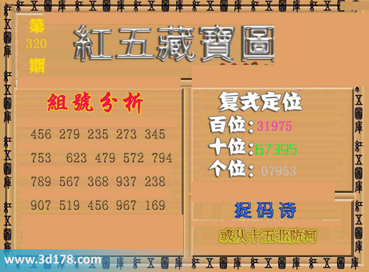 3d之家3d红五藏宝图第2015320期为您推荐复式定位、捉码诗以及组号分析: