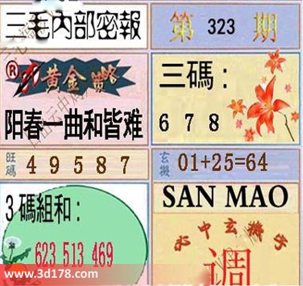 福彩3d第323期三毛内部密报综合推荐如下:3d之家三毛图库第323期三毛内部密报图详解: