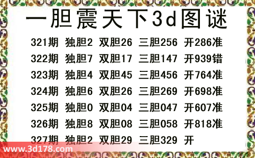一胆震天下三胆图库由3D之家3D图库频道原创,仅供彩民参考,温馨提供。