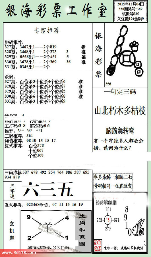 银海布衣图3d第2015331期布衣专家为您精心推荐: