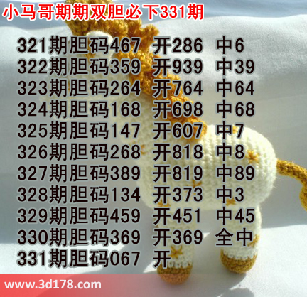 3d第331期小马哥三胆预测如下: