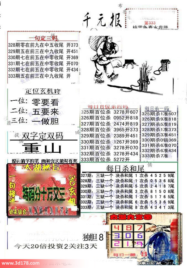 福彩3d第2015333期布衣千元报图详情分析如下: