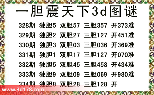 一胆震天下三胆图库由3D之家3D图库频道原创,仅供彩民参考,温馨提供。
