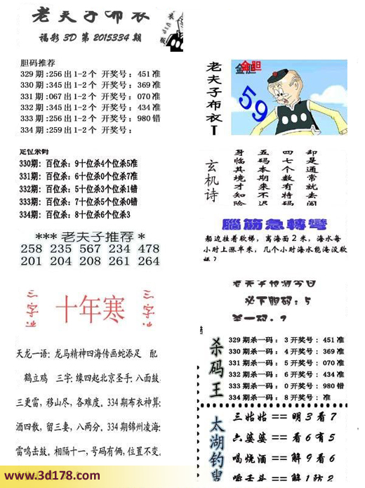 3d第2015334期老夫子布衣预测今日必下胆码图:3d之家第15334期老夫子布衣图库详解:334期:259 出1-2个 开奖号:334期:百位杀 9 十位杀 4 个位杀 5老夫子精选推荐:258 235 567 234 478201 204 208 261 264老夫子预测今日必下胆5,杀一码3脑筋急转弯:船边挂着软梯,离海面2米,海水每小时上涨半米,几个小时海水能淹没软梯?该布衣图库由福彩3D之家3D图库频道原创,仅供彩民参考,温馨提供。