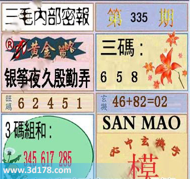 福彩3d第335期三毛内部密报综合推荐如下:3d之家三毛图库第335期三毛内部密报图详解: