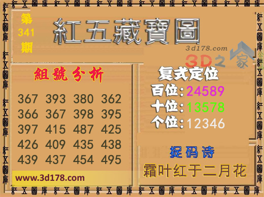 3d之家3d红五藏宝图第2015341期为您推荐复式定位、捉码诗以及组号分析: