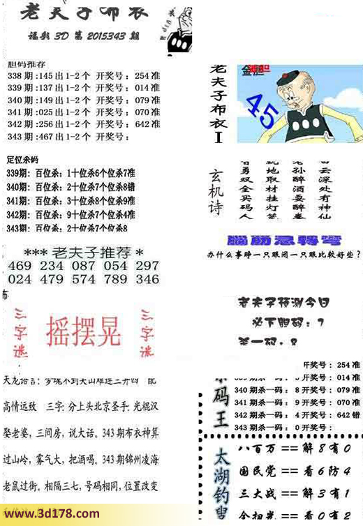 3d第2015343期老夫子布衣预测今日必下胆码图: