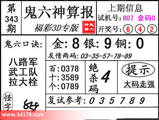 3d之家3d鬼六神算报第343期分析如下: