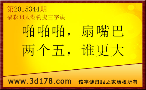 第15344太湖字谜解太湖钓叟三字诀:福彩3d第2015344期太湖图库解字谜详解:
