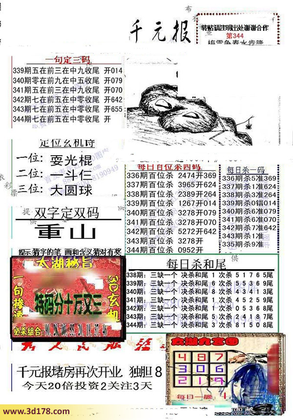 福彩3d第2015344期布衣千元报图详情分析如下: