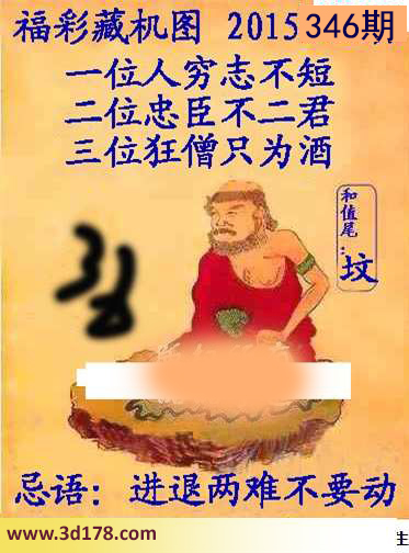 3d之家藏机图第2015346期为您精心推荐:福彩3d第346期正版藏机图详情如下:一位人穷志不短二位忠诚不二君三位狂僧只为酒和尾:坟忌语:进退两难不要动3d正版藏机图由3D之家3D图库频道原创,仅供彩民参考,温馨提供。