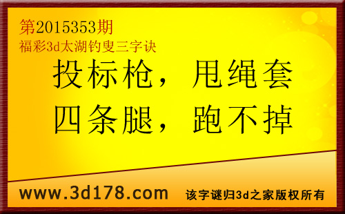 福彩3d第2015353期太湖图库解字谜详解:
