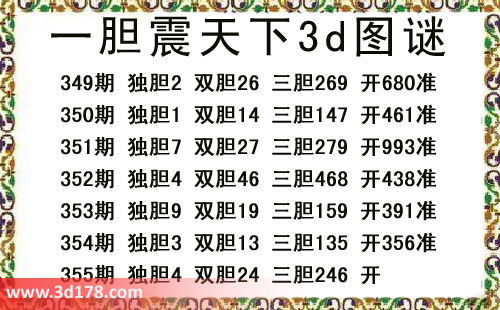 一胆震天下三胆图库由3D之家3D图库频道原创,仅供彩民参考,温馨提供。