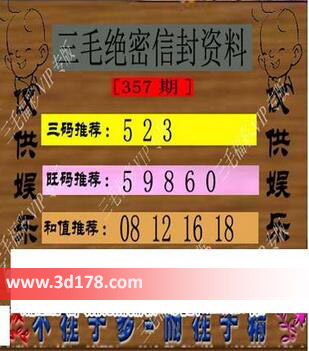 福彩3d第357期三毛绝密信封资料图详解:
