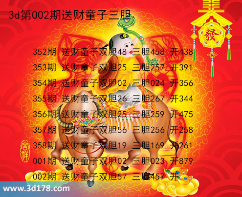 下面我们一起来回顾一下3d之家胆码图送财童子三胆近期推荐详情: