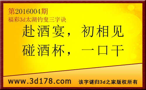 福彩3d第2016004期太湖图库解字谜详解: