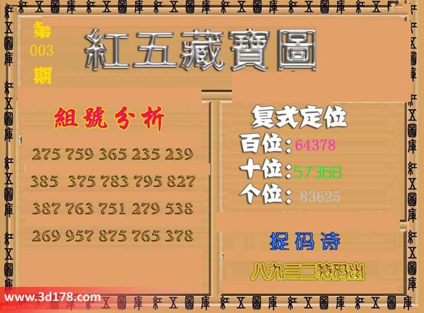 3d之家3d红五藏宝图第206003期为您推荐复式定位、捉码诗以及组号分析: