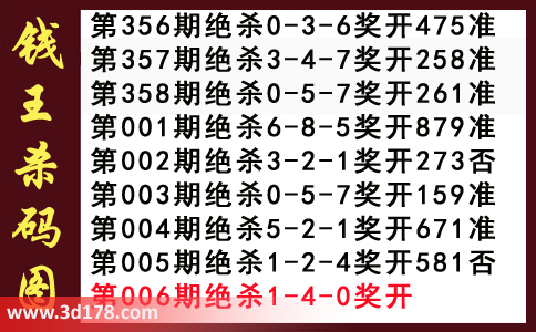 近期3d钱王杀码具体详情: