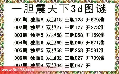 一胆震天下三胆图库由3D之家3D图库频道原创,仅供彩民参考,温馨提供。