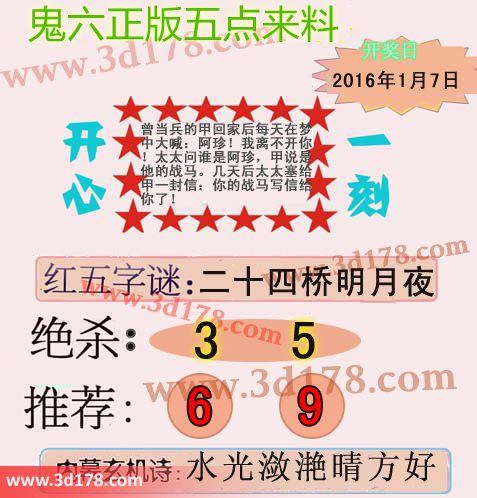 福彩3d鬼六图库第16007期鬼六正版五点来料图:第007期3d鬼六五点来料图详解:字谜:二十四桥明月夜绝杀:3 5两胆码推荐:6 9内幕玄机诗:水光潋滟晴方好该鬼六图库由福彩3D之家3D图库频道原创,仅供彩民参考,温馨提供。