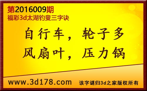 福彩3d第2016009期太湖图库解字谜详解: