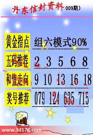 福彩3d第009期丹东信封图如下所示: