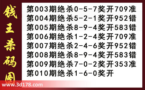 近期3d钱王杀码具体详情: