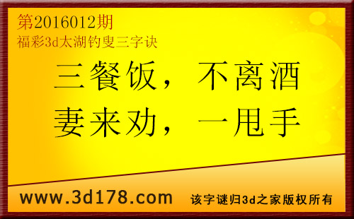 福彩3d第2016012期太湖图库解字谜详解: