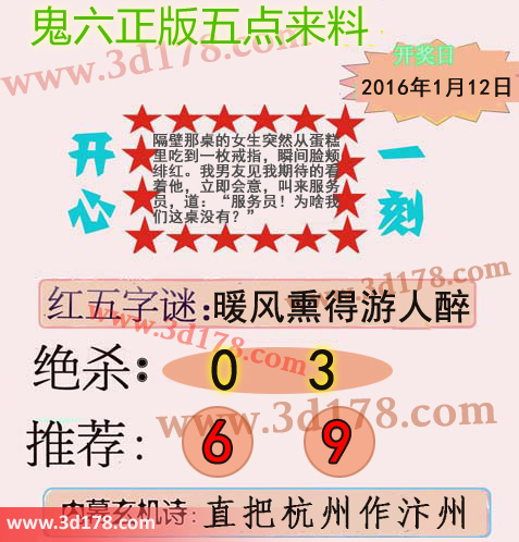 3d鬼六图库第16012期鬼六正版五点来料图: