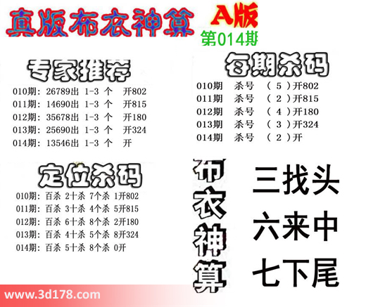 3d之家布衣图库之布衣神算图第2016014期详解: